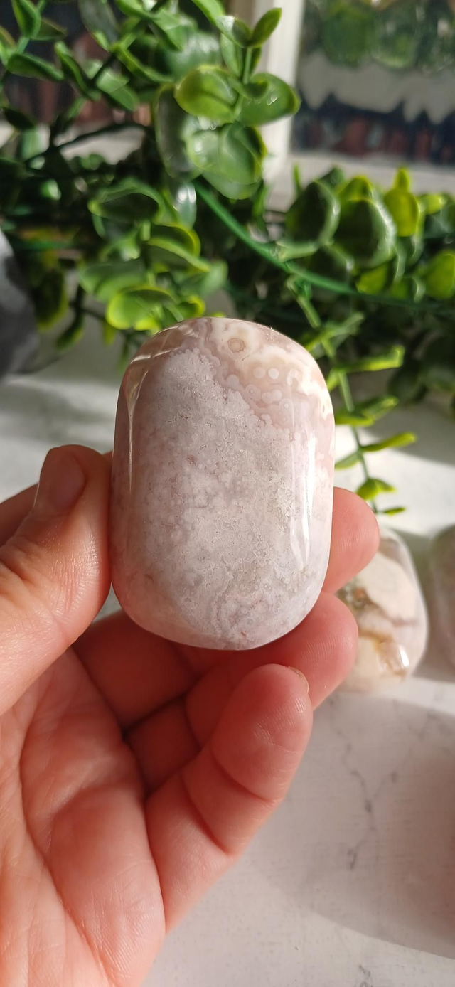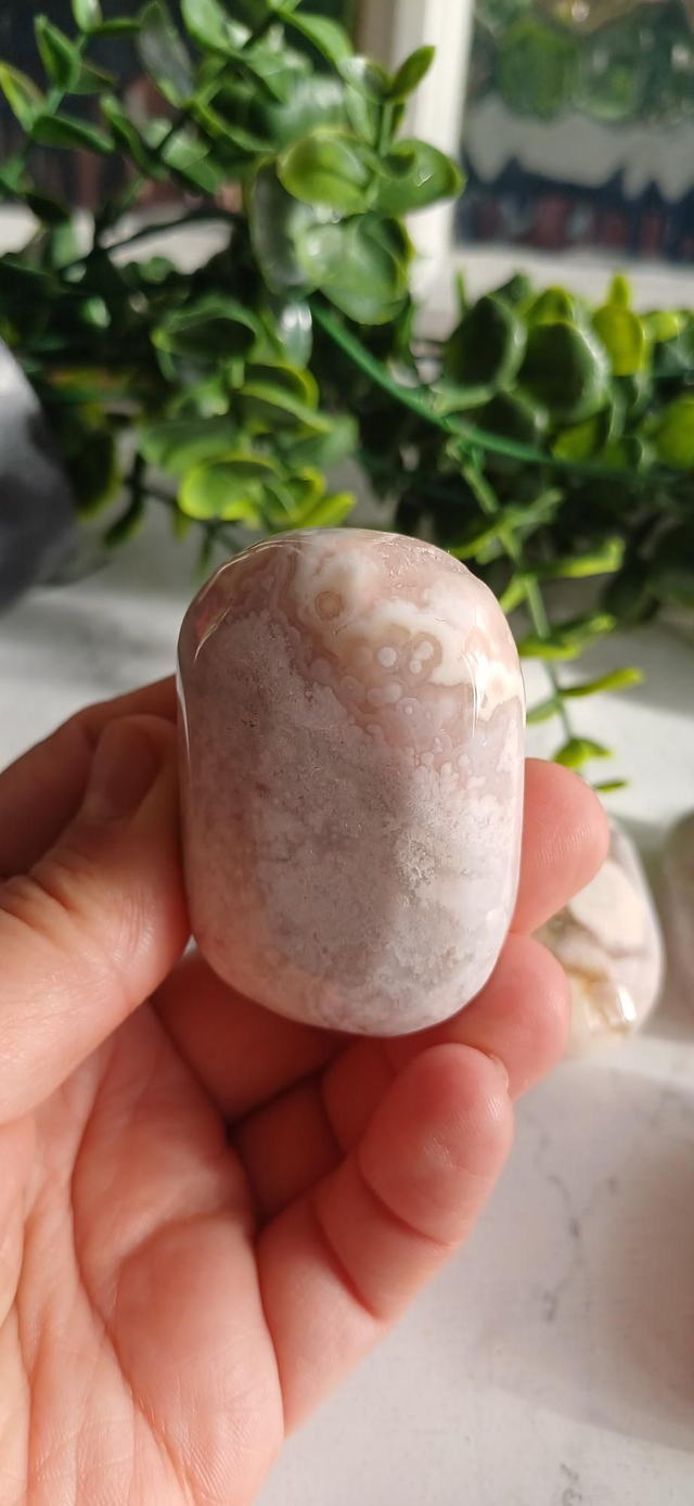 Pink Amethyst is known for its calming, heart-centred energy, offering comfort, clarity and compassion. With its unique druzy sparkle and elegant patterning, this palm stone is a one-of-a-kind treasure for any collection.